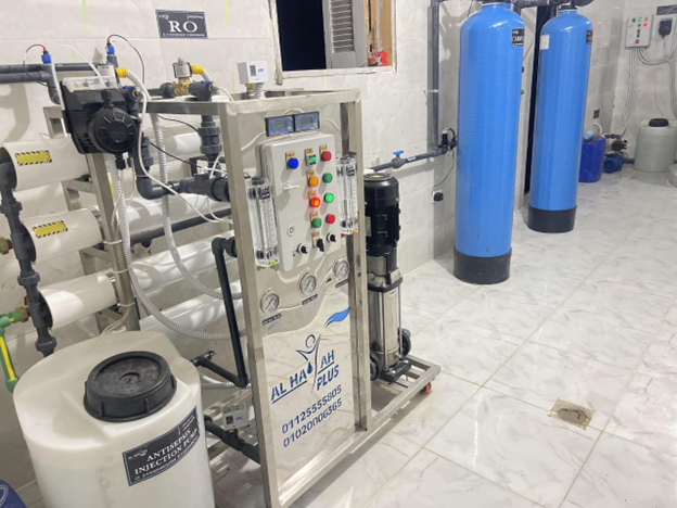 * وحدة التناضح العكسي: تعتبر القلب النابض للمحطة، حيث تقوم بفصل الأملاح والمعادن عن المياه النقية.